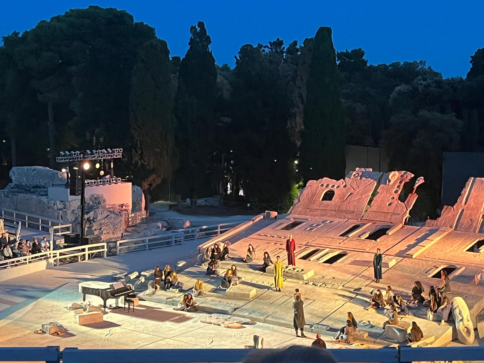 Ma per gli studenti l’esperienza non si è limitata al palcoscenico. L’ingresso nel Teatro Greco, il silenzio condiviso, la luce naturale del tramonto che accompagna l’inizio dello spettacolo  hanno costituito un momento generativo, che li ha resi consapevoli della potenza immaginifica e comunicativa dei testi che pazientemente studiano e analizzano nelle lezioni scolastiche e che così si rivelano ancora oggi uno strumento prezioso di formazione del cittadino, capaci di allenare al dubbio, alla complessità, all’empatia.