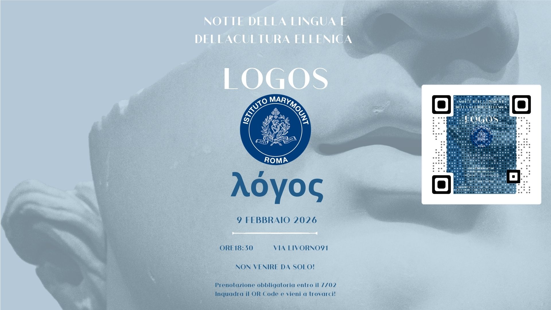 Anche quest’anno i nostri studenti dell’High School hanno lavorato a un programma ricco e originale per coinvolgere l’intera comunità scolastica nel loro amore per la cultura classica. Speciale anche la data: il 9 febbraio la lingua e la cultura ellenica si celebrano in tutto il mondo e per l’occasione avremo l’onore di ospitare S.E. Eleni Sourani, Ambasciatrice della Repubblica Ellenica in Italia, la cui presenza intende valorizzare la cooperazione culturale tra i nostri due paesi come motore di dialogo e sviluppo.