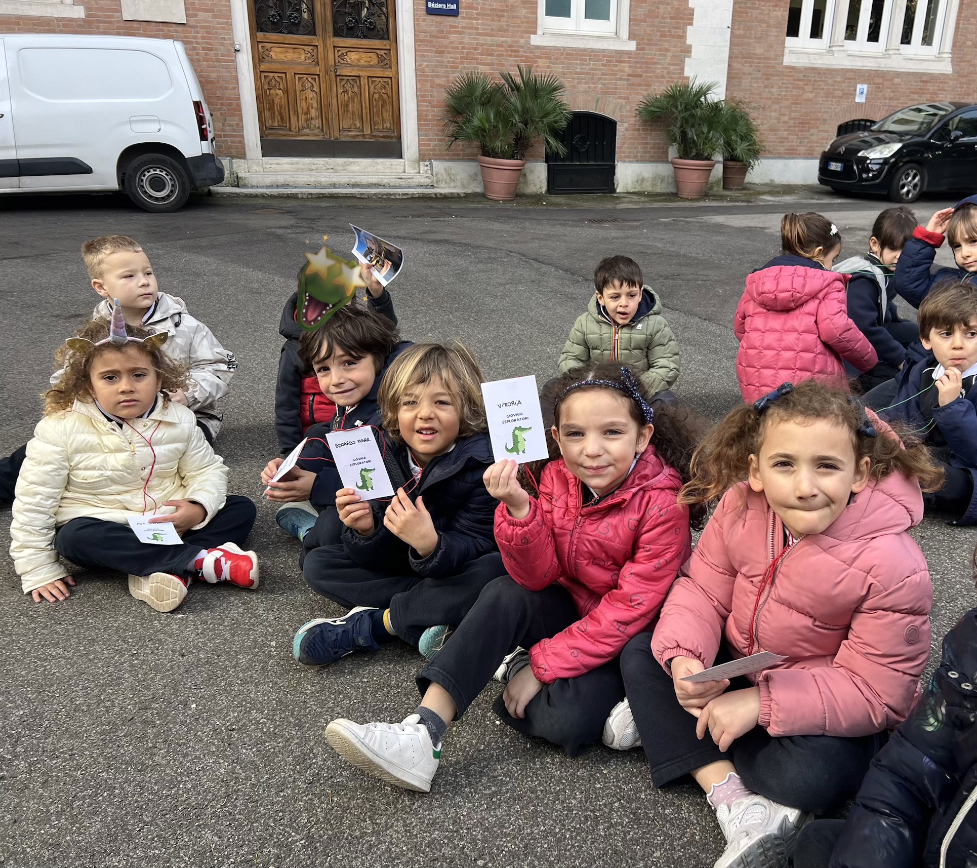 Nell’ambito di uno di questi incontri abbiamo seguito da vicino la giornata dei “Piccoli esploratori”, iniziata con la lettura condivisa di un albo illustrato che ha coinvolto i bambini in modo attivo e partecipato, We’re Going on a Bear Hunt: i suoni, i gesti, le espressioni, ogni elemento ha contribuito a trasformare la narrazione in un’esperienza immersiva, capace di stimolare immaginazione e curiosità. Da quel momento il passo verso l’avventura è stato naturale: divisi in piccoli gruppi e incoraggiati dalla presenza delle maestre e dei bambini di 5 anni, i nostri “piccoli esploratori” si sono infatti trasformati in scimmiette, uccellini, coccodrilli, serpenti, ricci, scoiattoli, orsi, rane ed elefanti per intraprendere un viaggio alla scoperta degli spazi del Kindergarten che li accoglieranno il prossimo anno. L’esplorazione delle aule, dei padiglioni, degli spazi didattici all’aperto, organizzata in forma ludica e cooperativa, ha consentito così ai bambini di orientarsi, riconoscere luoghi e costruire i primi punti di riferimento, favorendo una progressiva familiarizzazione che li aiuterà a ridurre l’incertezza legata al cambiamento. Anche le successive attività di rielaborazione, come la costruzione condivisa di una mappa degli spazi esplorati, hanno assunto un ruolo significativo poiché hanno permesso loro di dare forma all’esperienza vissuta e di consolidare quanto appreso, rafforzandone nel contempo il senso di autonomia.